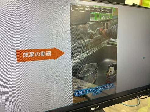 各班での研修後には、レポートを作成し、社長へ報告しています。1日の業務の流れや具体的な仕事内容、仕事を進める上で大切にしていることなど、自分の言葉でまとめています。Aさんのレポートは、編集した動画も使いながら、コミカルでわかりやすく、印象に残るプレゼンテーションとなるよう工夫が凝らされていました。