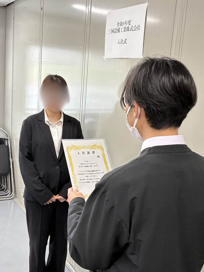 2026年4月1日(水)、うららかな春の陽気に包まれたこの日、三河設備工業に新入社員が1人、入社しました。
